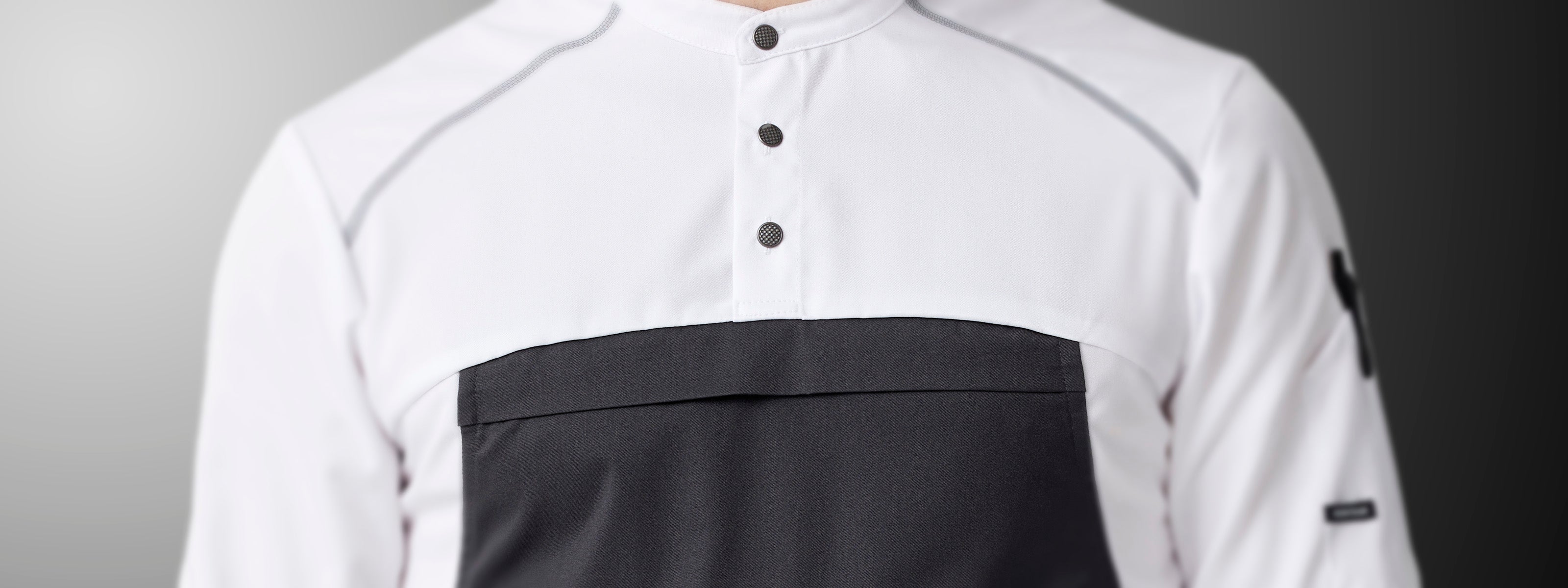 With our Snap-On collection, available for sales in the EU only at the moment, we have redefined workwear for chefs by creating unique chef shirts, jackets, and aprons with ergonomic benefits. The collection was developed in collaboration with a renowned Michelin-starred chef.